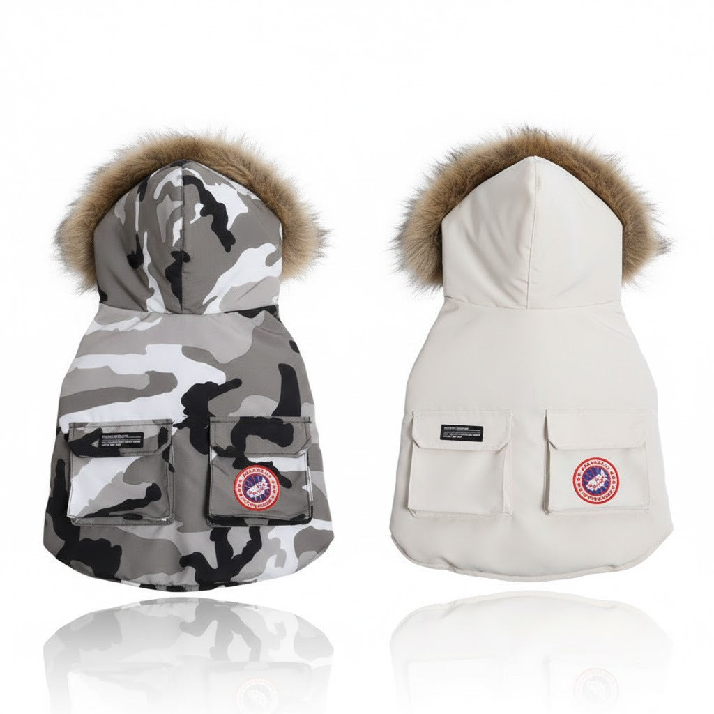 Designed for style, comfort, and versatility, our All-Season Luxe Utility Dog Parka is the ultimate cold-weather essential for fashionable pups. Crafted with insulated padding, a cozy faux-fur trimmed hood, and a structured utility silhouette, this parka keeps your pup warm while looking effortlessly chic. Perfect for snowy adventures, crisp fall walks, and cool urban outings, this coat transitions seamlessly between seasons. Thoughtful details like functional pockets, a secure fit, and durable fabric make it as practical as it is stylish.