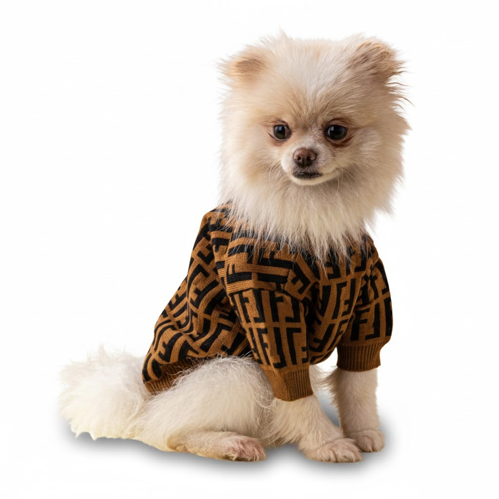 Wrap your pup in timeless sophistication with our Mocha Luxe Monogram Knit Dog Sweater — a cozy statement piece designed for elevated everyday wear. Featuring a rich brown tone with an all-over modern monogram-inspired pattern, this sweater delivers high-end style with all-day comfort. Crafted from a soft, breathable knit with gentle stretch, it’s perfect for cooler days, layering under coats, or wearing solo for polished, effortless looks. Finished with ribbed cuffs and neckline, this sweater keeps your pup warm while turning heads wherever they go.